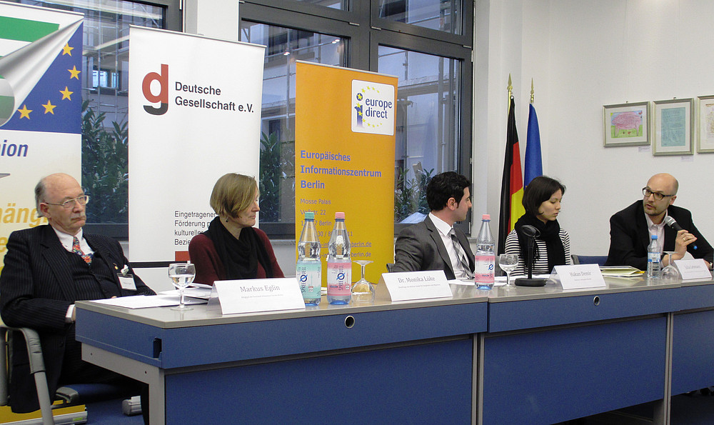 Nach der Begrüßung und inhaltlichen Einführung durch Jan Rössel vom Europäischen Informationszentrum startete die Diskussion mit der Frage nach der Bewertung von Migration in der Bevölkerung. Moderator Hakan Demir, Herausgeber von MiGAZIN – das Fachmagazin für Migration und Integration, zitierte eine aktuelle Umfrage des ZDF, laut der Zuwanderung von den Menschen derzeit als größtes Problem in Deutschland wahrgenommen würde.