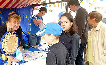 Der Regen konnte dabei der guten Laune der Europabegeisterten nichts anhaben. Zahlreiche Interessierte kamen zusammen, um Antworten auf europäische Fragen zu finden. Dabei zeigte sich: Egal ob bei Kindern, Jugendlichen oder Erwachsenen - Europa ist ein viel diskutiertes Thema. Die EUBler mit ihren Kollegen von Marzahn-Hellersdorf und der Europa-Akademie erklärten mit viel Freude die Details der Europapolitik.