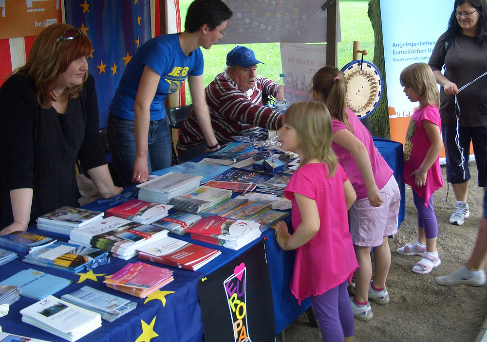 Zum Höhepunkt des Biesdorfer Blütenfestes hat sich die Europa-Union Berlin (EUB) am Samstag, den 19. Mai 2012, in einer gemeinsamen Aktion mit der der Europabeauftragten vom Bezirksamt Marzahn-Hellersdorf, Sandra Brumm, der Europäischen Akademie und der Jungen Europäischen Bewegung (JEB) präsentiert.