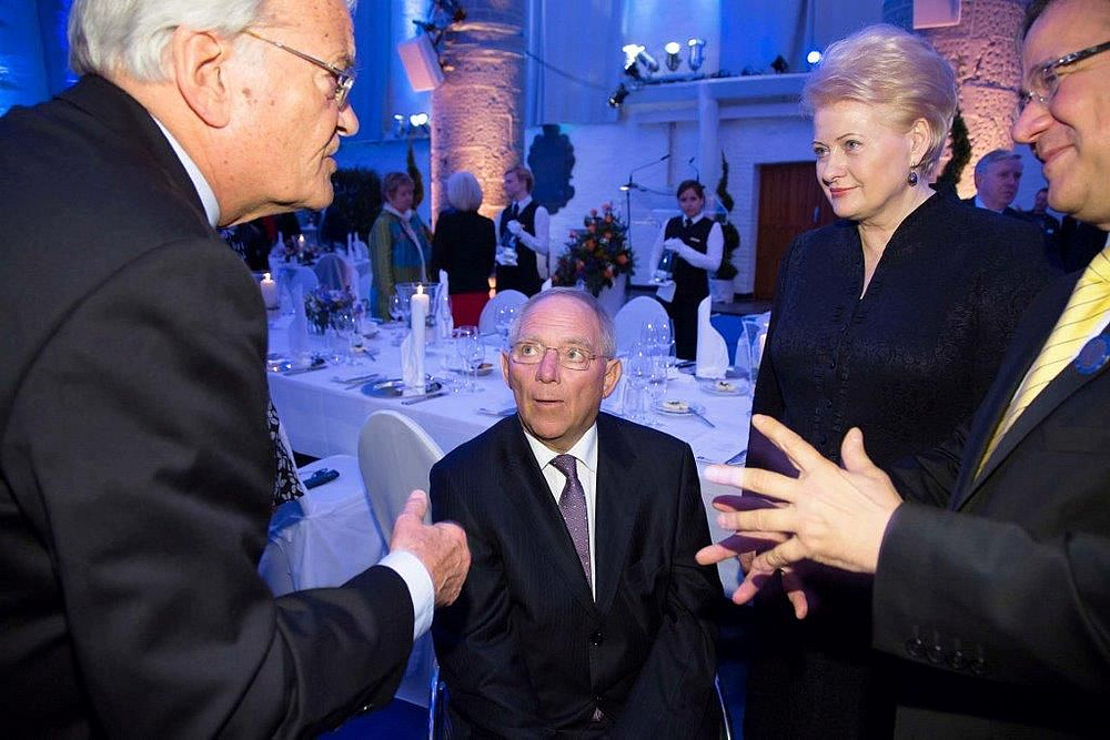 Dabei hatte er auch Gelegenheit, der Preisträgerin zu gratulieren. Den Karlspreis bekam dieses Jahr die litauische Ministerpräsidentin Dr. Dalia Grybauskaité verliehen. Damit fanden ihre bedeutenden Verdienste um eine vertiefte Integration der Europäischen Union und die Bewältigung der aktuellen Krise eine große Würdigung. Mehr
