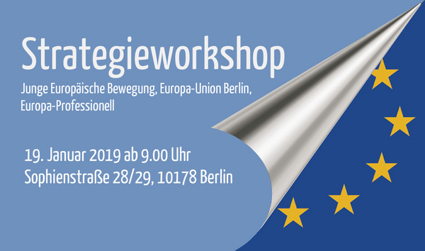 Der Workshop wird gemeinsam von der Europa-Union Berlin, der Jungen Europäischen Bewegung Berlin-Brandenburg und Europa-Professionell organisiert und findet am Samstag, den 19. Januar 2019 in der Galerie, Sophienstraße 28/29 10178 Berlin statt.